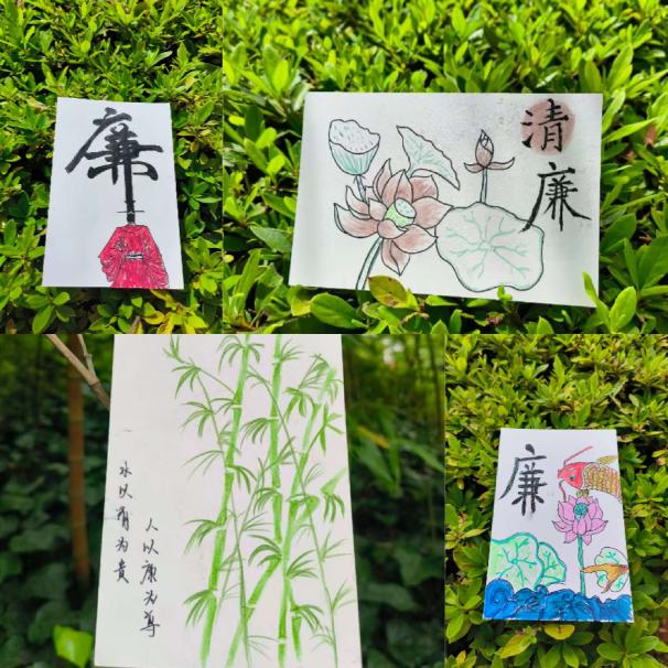 创作者们深植廉洁文化根基,以匠心构思传递崇廉尚洁的精神内涵。同学们以水墨勾勒莲花“出淤泥而不染”的纯净姿态,借“莲”“廉”谐音传递高洁之志;以劲竹挺拔的线条象征“有节不屈”的清廉风骨,用简练笔触诠释“清廉自守”的人生准则。在文字表达上,或题刻“淡泊明志”“克己奉公”等箴言,或化用经典诗句凝练廉洁哲思,让方寸明信片成为承载廉洁理念的文化载体。经严格评审,一批主题鲜明、寓意深刻的作品脱颖而出,其以纯粹的艺术语言展现对廉洁文化的深刻思考,既具审美价值,更富教育意义。